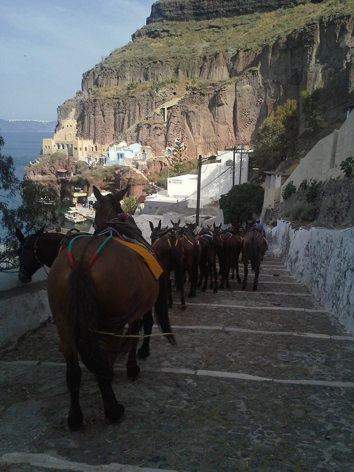 Five minutes into my morning run down the side of the steep caldera, a dozen donkeys ran past me. I heard a man shouting commands.