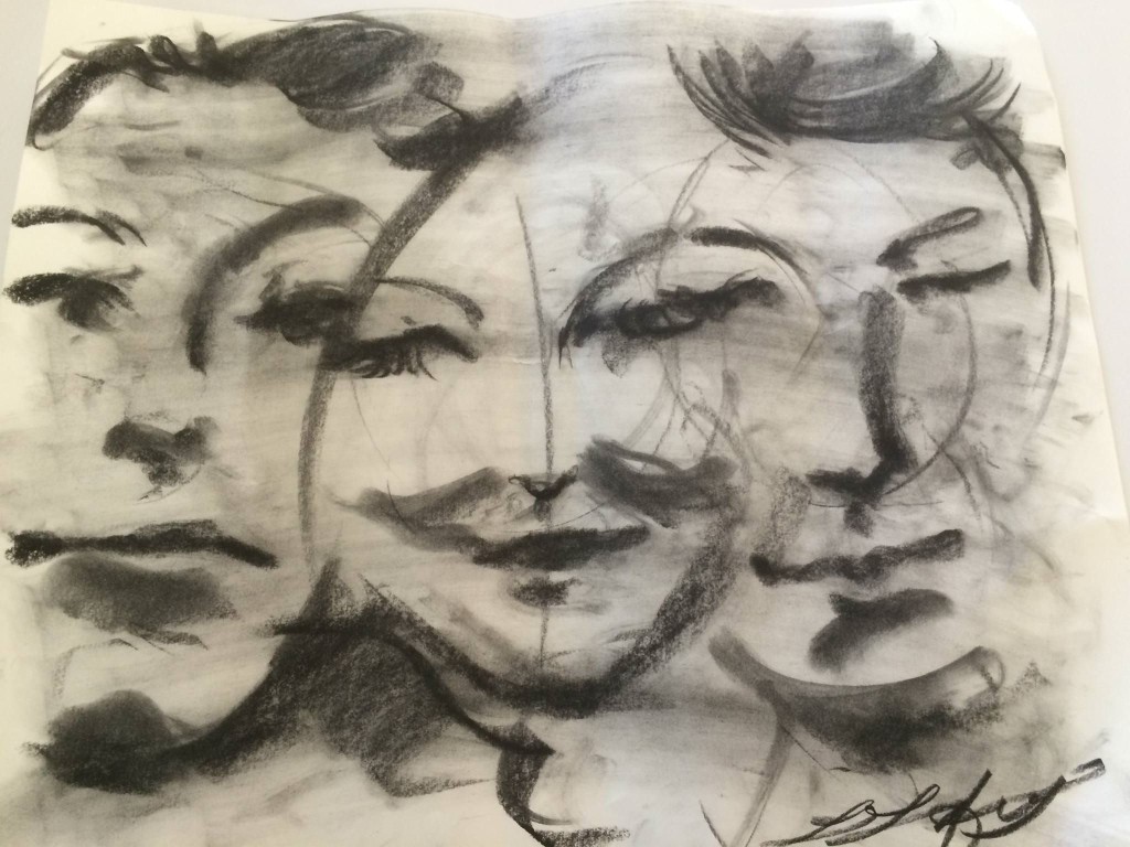 On the way back from a meeting, two colleagues and I caught the subway. Sitting across from us was an artist, working in charcoal. We had him draw us. Apparently, we look like this.